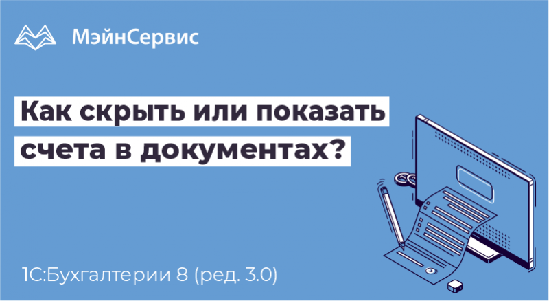 В настройках программы 1С Бухгалтерии 8 (ред. 3.0) по умолчанию отключено отображение счетов в документах. Существуют два способа, позволяющие настроить отображение счетов в документах.